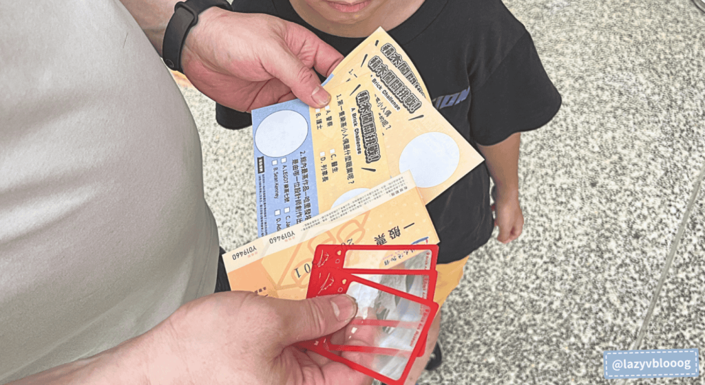購完票後,服務人員給我們一人各一張闖關卡、塑膠放大鏡和門票,