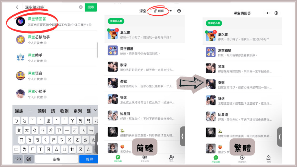 在小程式搜尋的地方輸入『深空請回答』,就可以找到囉!