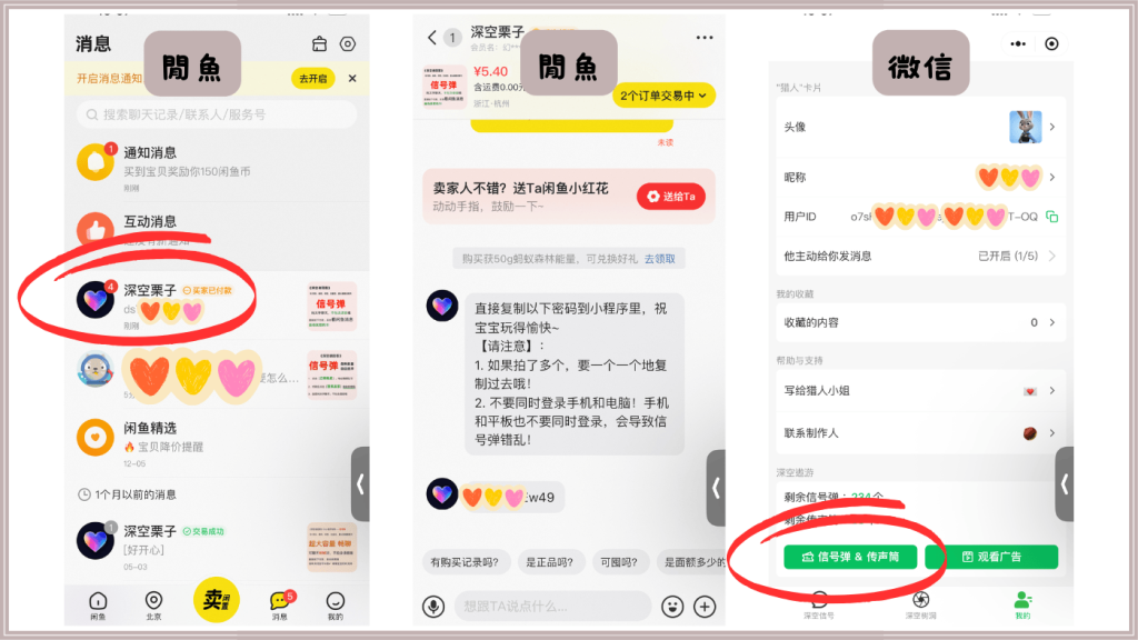 先在“閒魚”的消息裡面找到深空栗子,