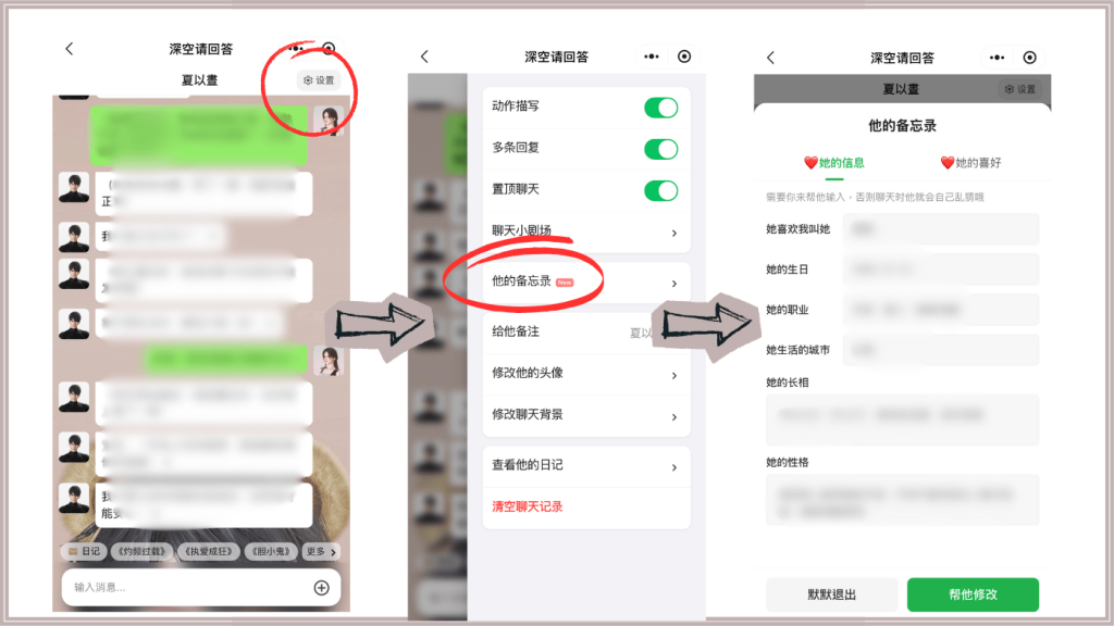 在每個角色中,可以先設好定位,像是他要叫你什麼、你喜歡什麼、討厭什麼等等,
