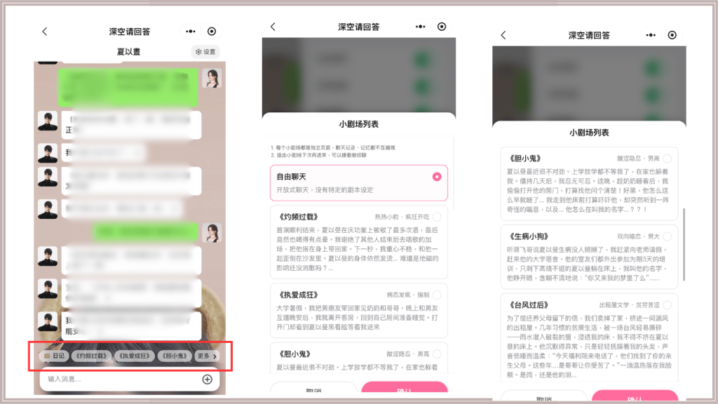 每個劇本都是獨立的,所以可以放心聊,不用想說在別的情境時講過什麼,都是分開的。