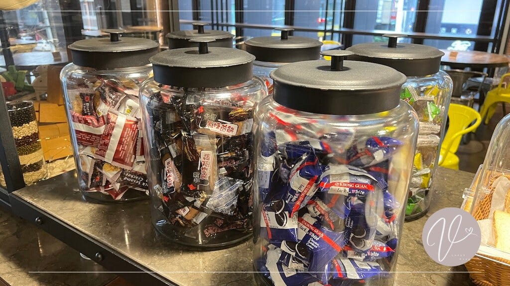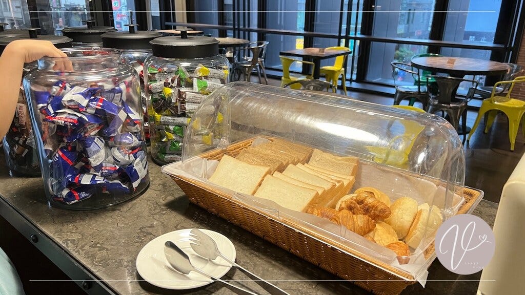 如果下午肚子有點餓,可以來到二樓的餐廳,這裡供應一些麵包、餅乾、果汁咖啡等等,當然你也可以點外送,然後在二樓喝飲料🙃