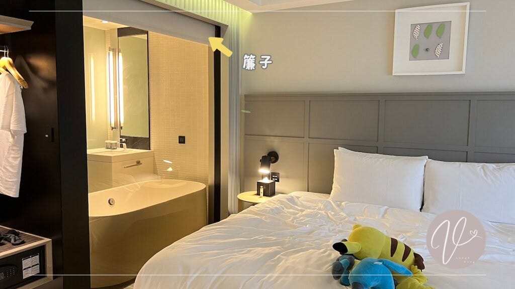 床的旁邊是浴室,隔著一片玻璃,看到時還滿驚訝,但細看發現有簾子可以拉🤣如果連泡澡都被剝奪隱私,那一趟旅程真的很不盡興,幸好只是誤會…