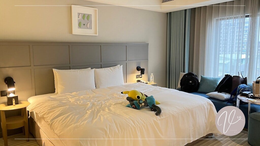 房間內灰綠色調素雅舒適,當天是入住豪華雙人房,位於八樓。