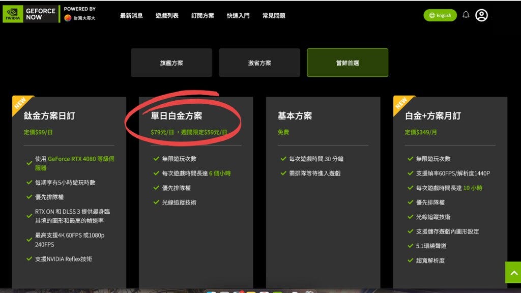 上了 GFN(GeForce Now的簡稱)網站,發現價格也太甜了吧!!(我是和Shadow PC相比)