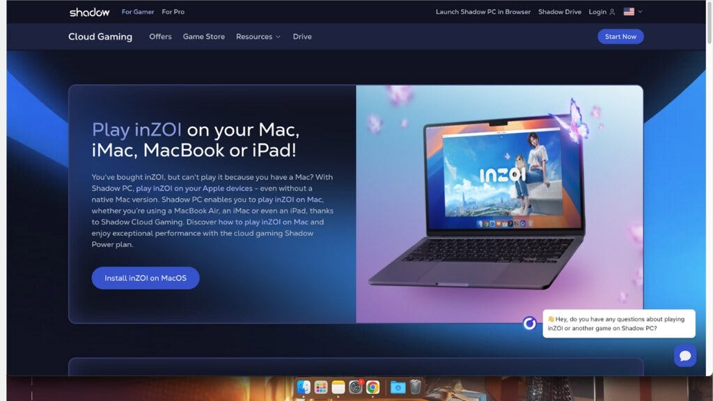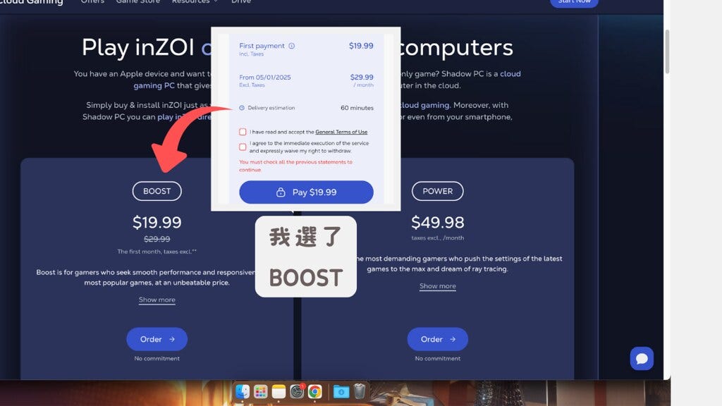 上面寫『使用Shadow PC用MAC玩inZOI』?!真的假的?!超興奮立刻搜尋關鍵字『Shadow PC』。