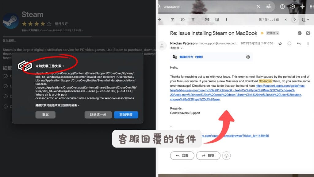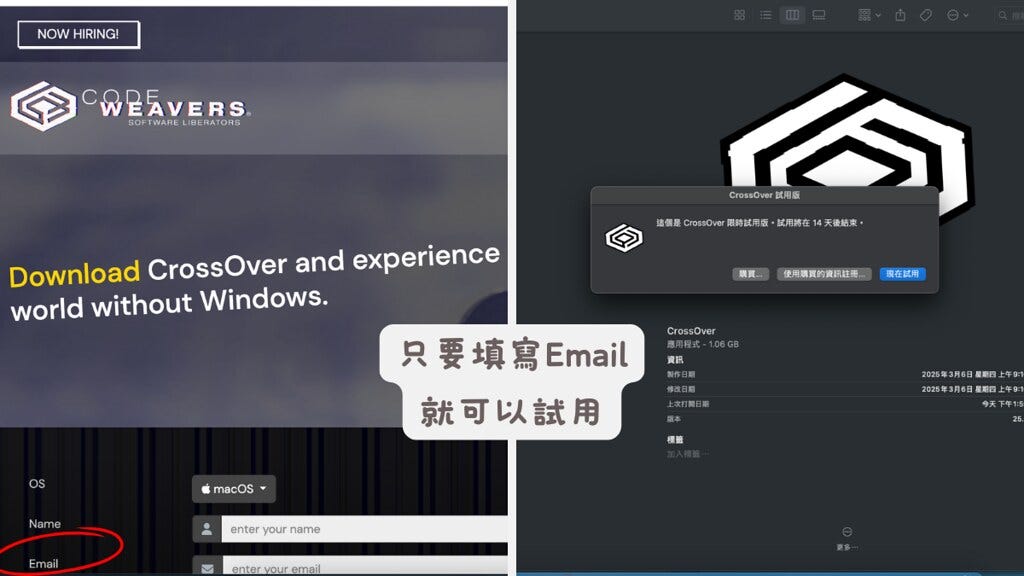 試了第二個網友推薦的Crossover,我也不能用(怒)