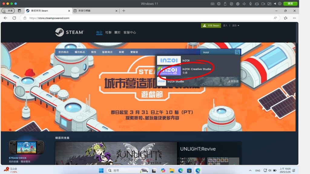 所以要用它來下載Steam,再下載inZOI的樣子,我按照這個順序做操作。
