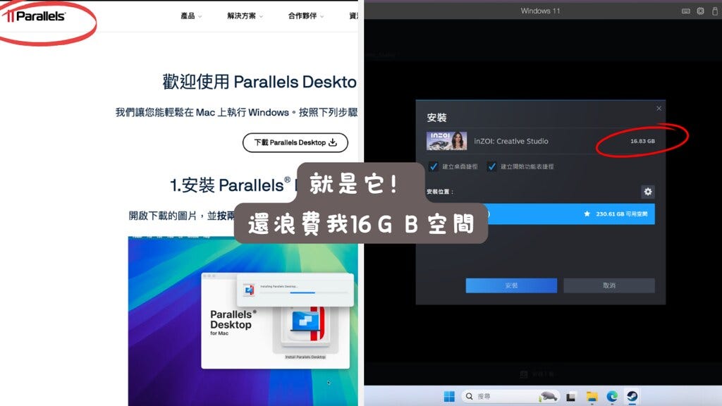 所以又在那邊假會,第一個先試了Parallels,以下是浪費時間的過程…