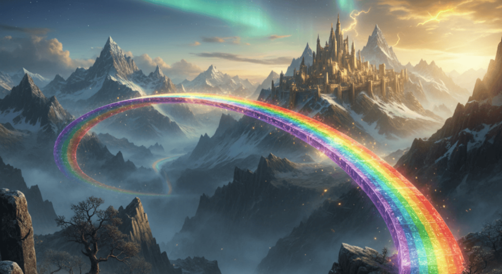 北歐神話中的彩虹橋就是連接人類和眾神的橋樑,眾神往返人類世界的必經之路。