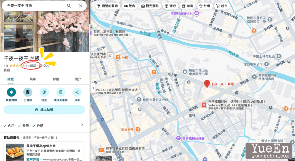 看了一下Google地圖的店家資訊,發現評價也太多了吧Σ(°Д°;